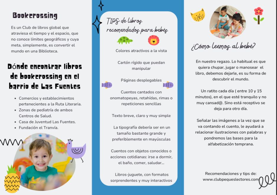 - Acceso a recursos de Bookcrossing en el barrio de la Fundación el Tranvía y de la Red de Comercios que pertenecen a la Ruta Literaria, para compartir y descubrir nuevos cuentos.